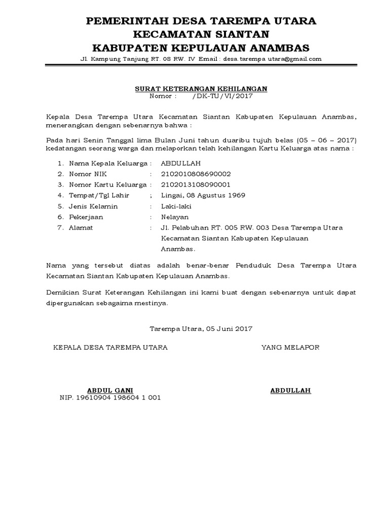 Koleksi admin mengenai Contoh Surat Keterangan Hilang Kartu Keluarga.