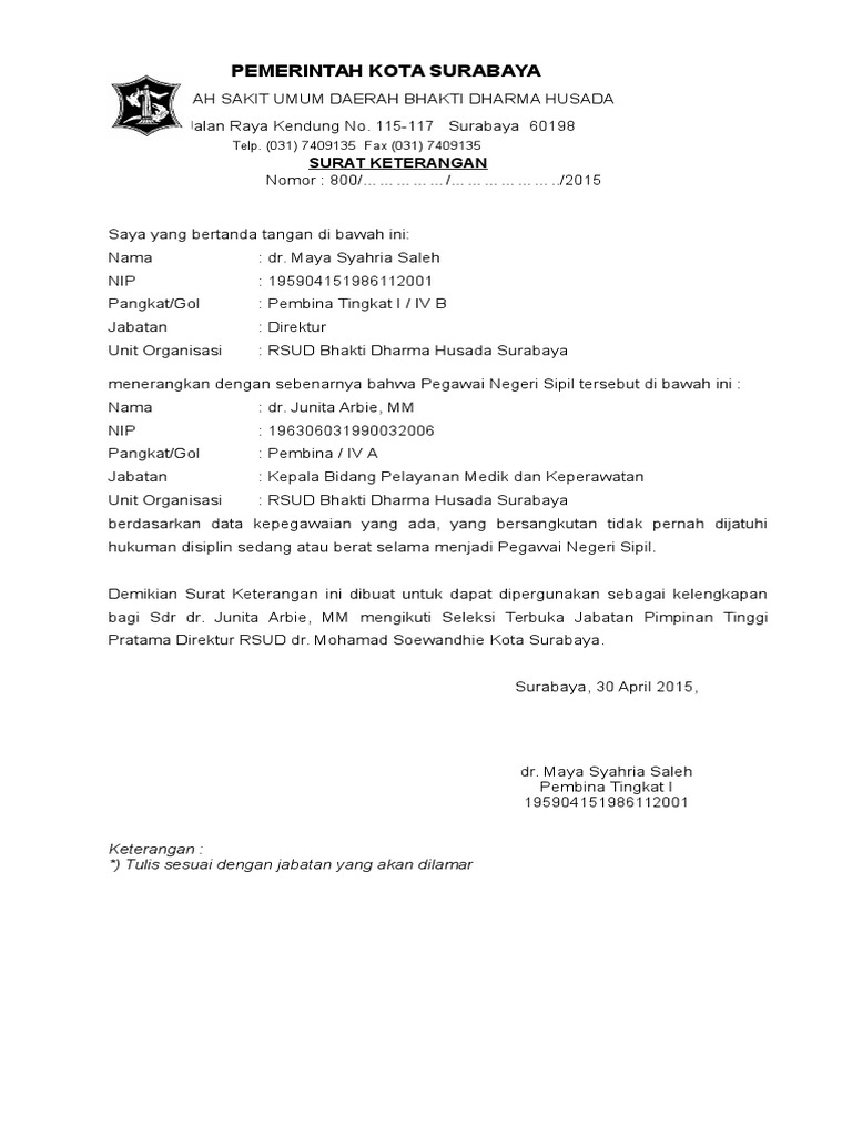 Contoh Surat Keterangan Tidak Pernah Dijatuhi Hukuman Disiplin Bagi Pns