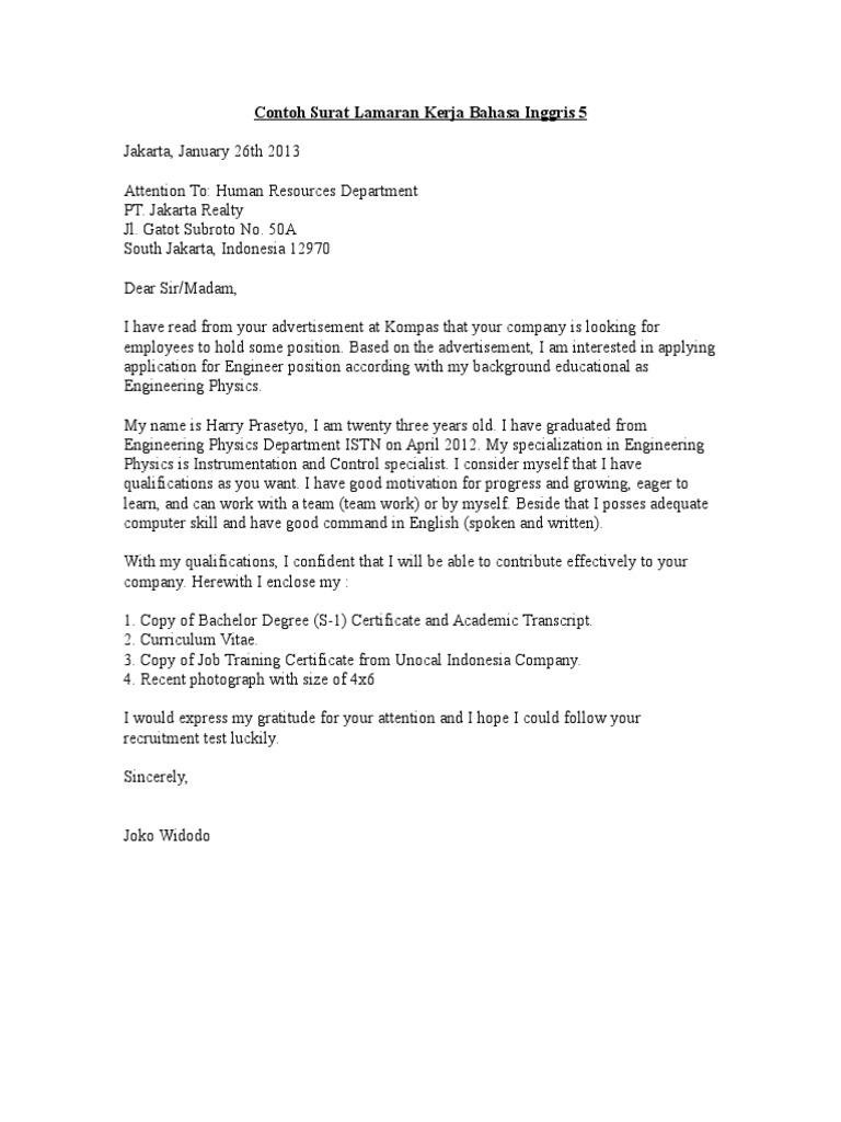 Contoh Surat Lamaran Kerja Bahasa Inggris 5doc