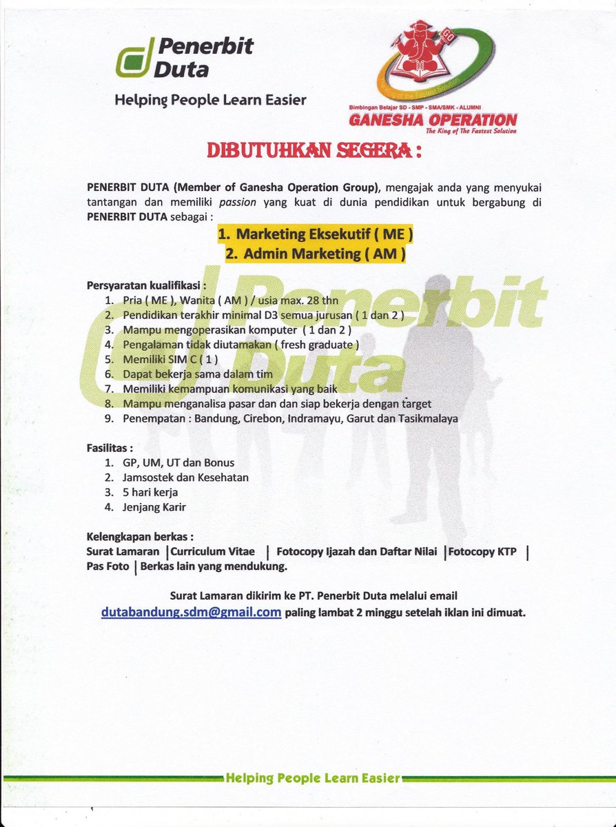 Berikut data lengkap tentang Contoh Surat Lamaran Kerja Bimbel Ganesha Operation.