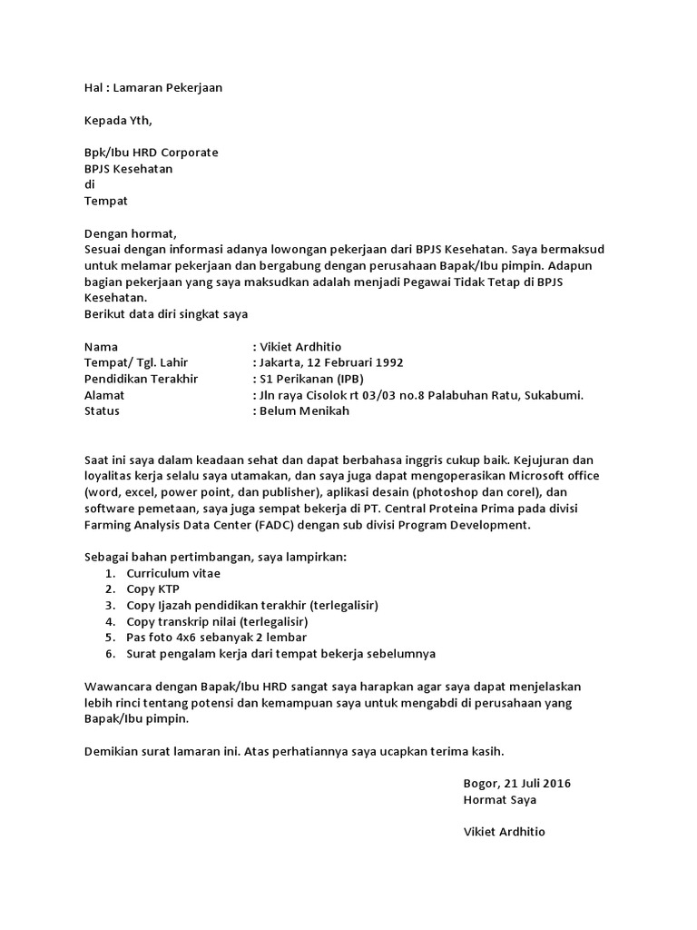 Jika ada sedang mencari Contoh Surat Lamaran Kerja Ke Bpjs Kesehatan.