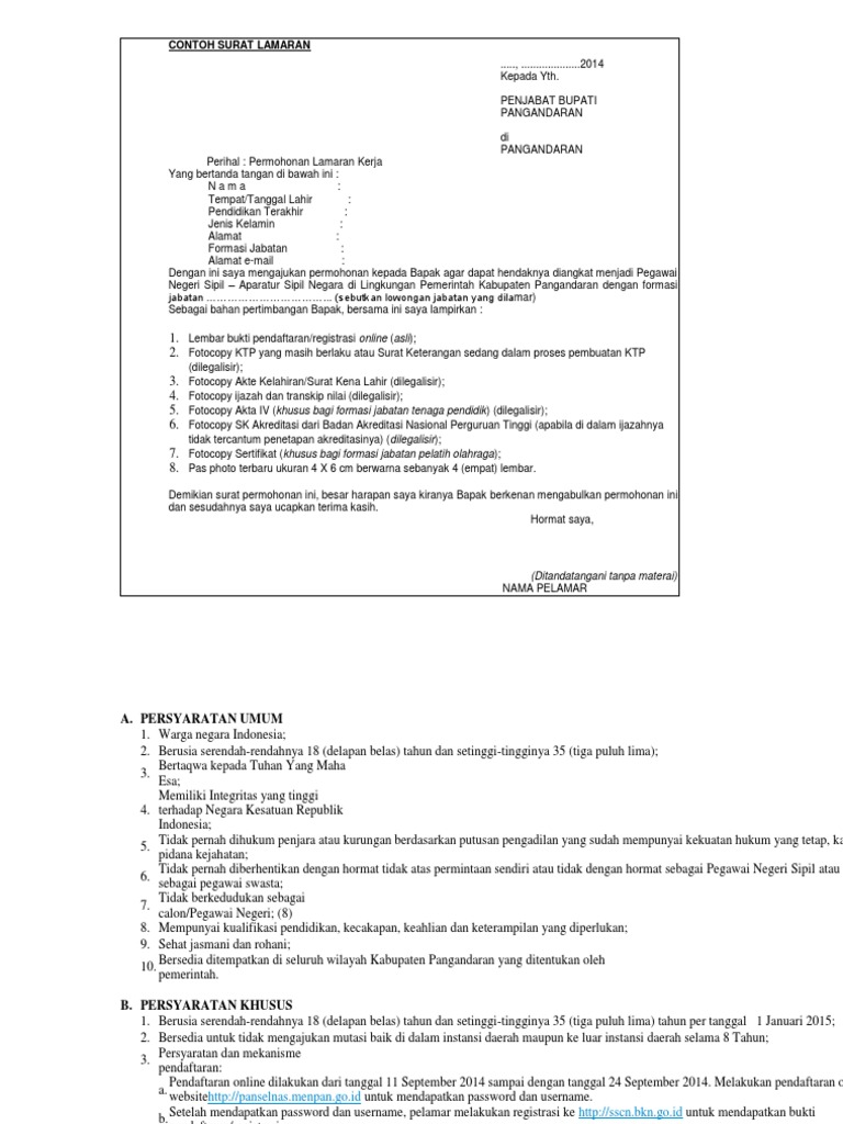 Contoh Surat Pendaftaran Cpns Kemenkumham Info Pendaftaran Cpns