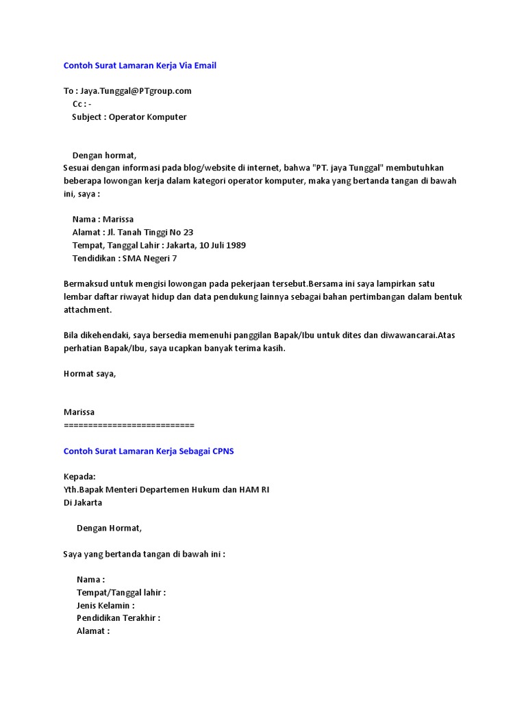Contoh Surat Lamaran Kerja Via Email Dengan Panduan Lengkap Contoh
