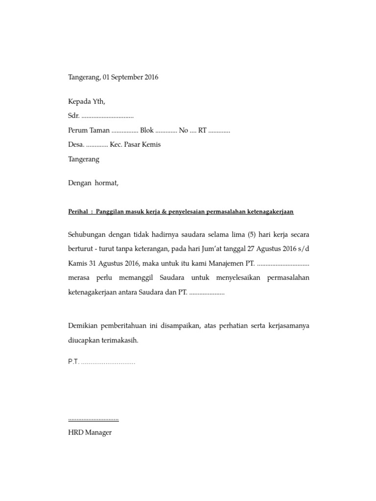 Contoh Surat Pemanggilan Karyawan Bermasalah Blog Gado Gadoxyz