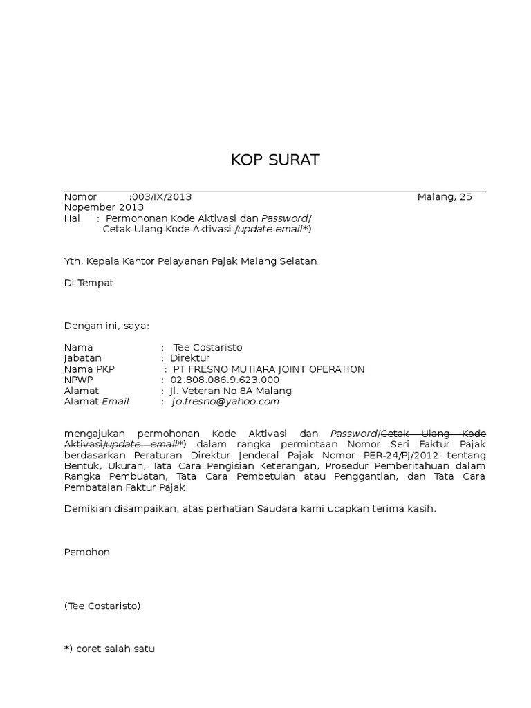 Temukan informasi lengkap tentang Contoh Surat Pembatalan Faktur Pajak Ke Kpp.