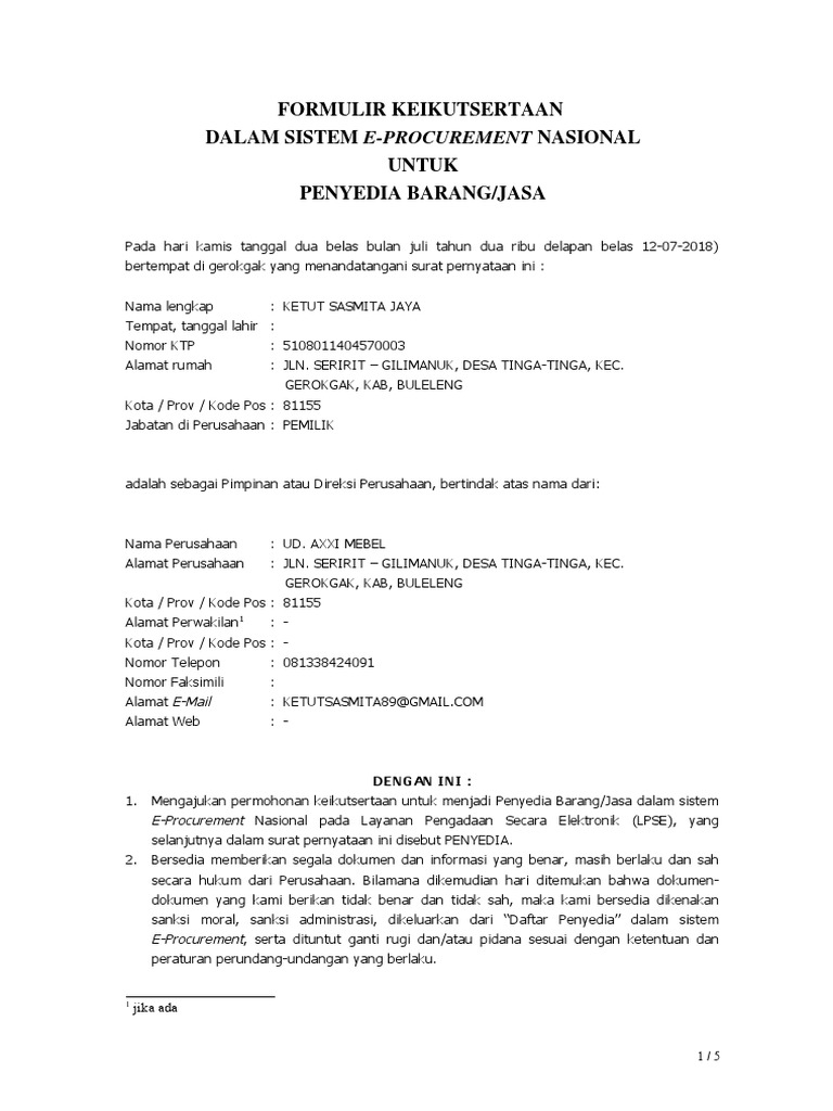 Surat Pernyataan Penuedia Barang Dan Jasa Elektronik