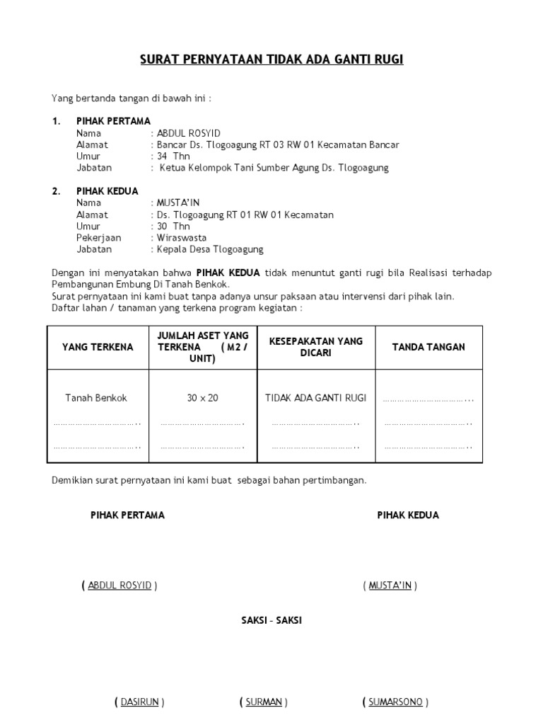 Temukan informasi lengkap tentang Contoh Surat Pernyataan Tidak Menuntut Ganti Rugi.