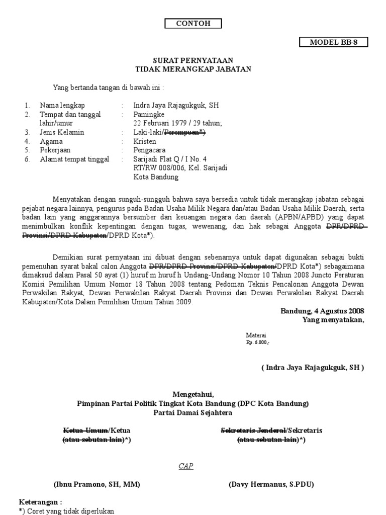 Contoh Surat Pernyataan Tidak Merangkap Jabatan Yang Baik List Kerja