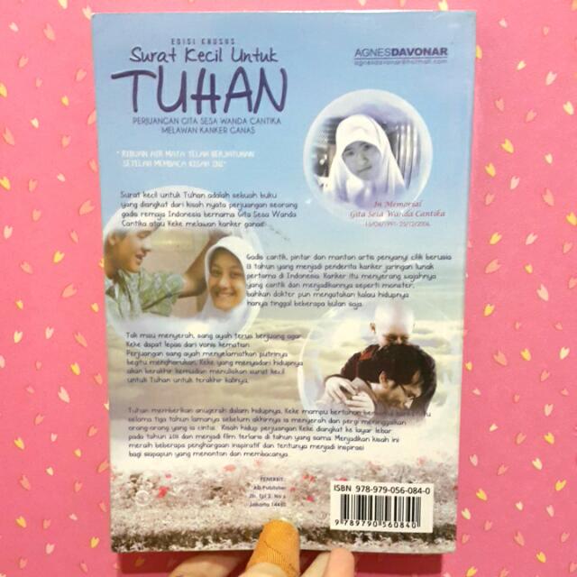 Novel surat kecil untuk tuhan karya agnes davonar. Gadis malang itu nama lengkapnya gita sesa wanda cantika yang orang biasa memanggilnya dengan keke. ø eka wulandari 14 ø ella suci dwi i 15 ix d. Sinopsisi novel surat kecil untuk tuhan novel surat kecil untuk tuhan merupakan novel karya novelis agnes davaonar yang mengisahkan mengenai sebuah perjuangan gadis remaja yang berusaha melawan kanker yang ganas.