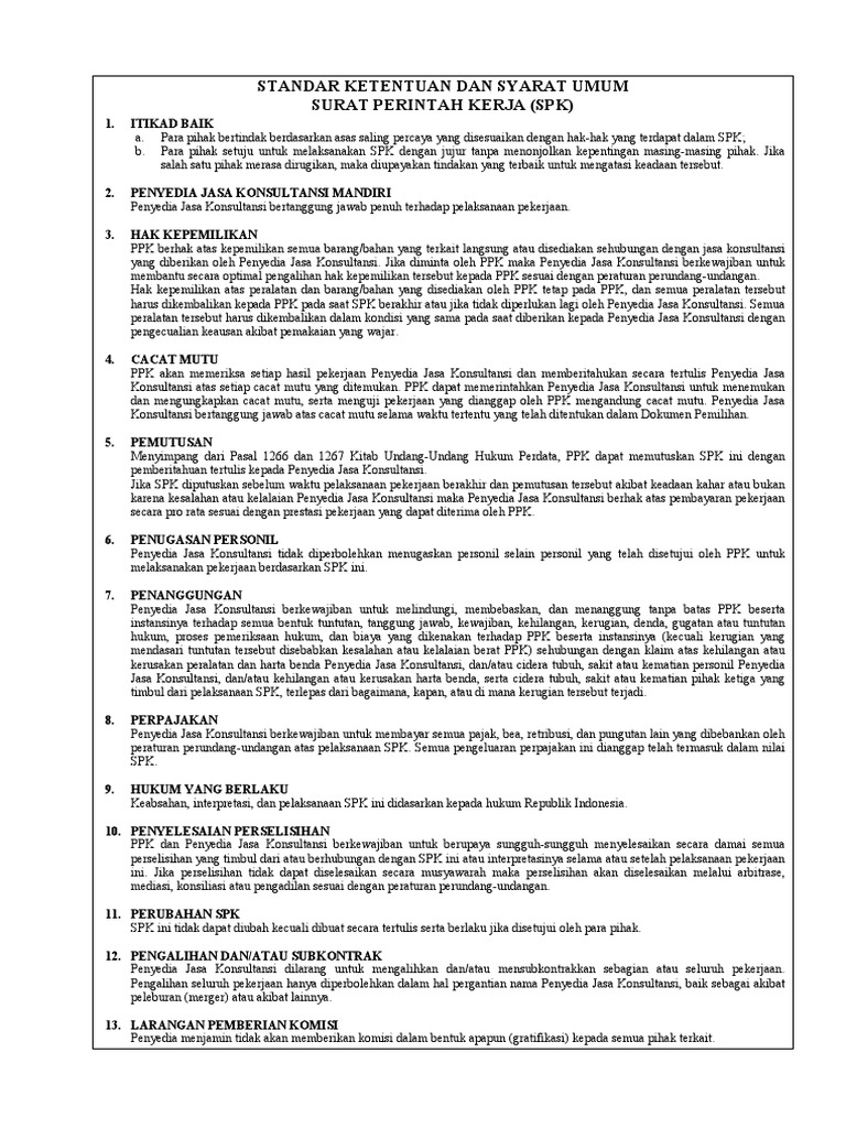 Standar Ketentuan Dan Syarat Umum Surat Perintah Kerja Spk