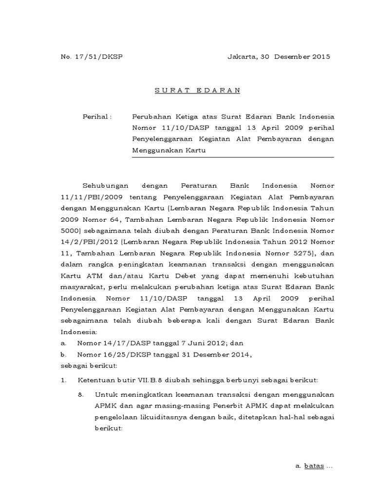 Inilah yang anda cari tentang Surat Edaran Bank Indonesia Nomor 1417dasp.