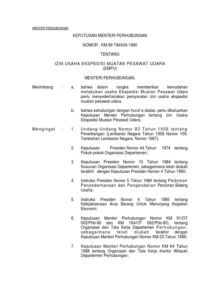 Km 89 Thn 1990 Izin Usaha Ekspedisi Muatan Pesawat Udara