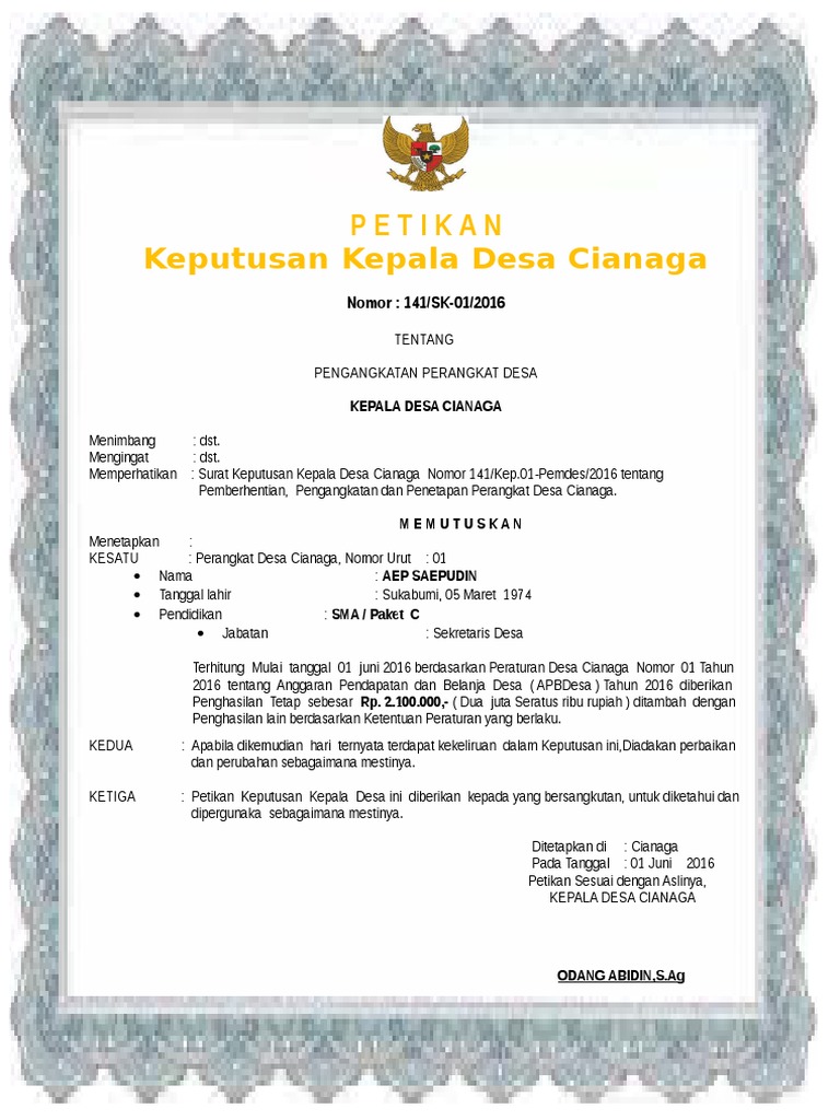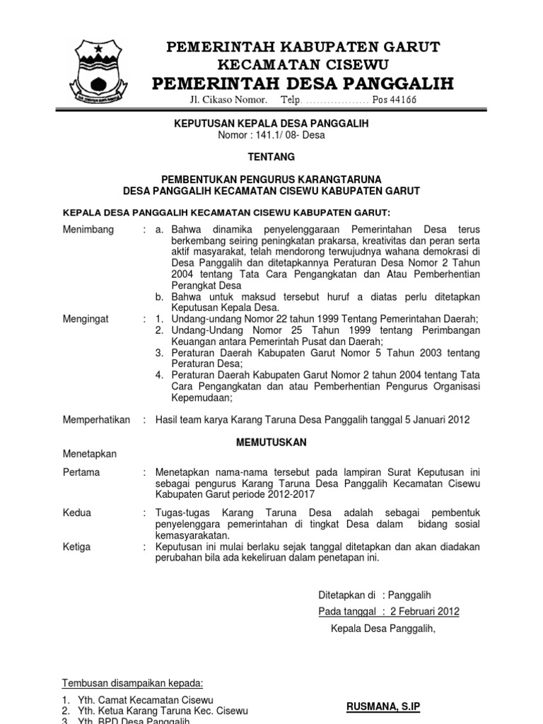 Contoh Surat Sk Perangkat Desa Cara Penulisan Yang Benar