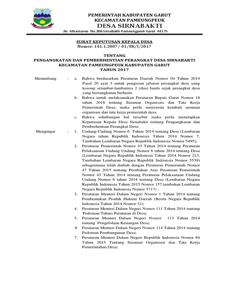 Berikut gambar-gambar mengenai Surat Keputusan Kepala Desa Tentang Pemberhentian Perangkat Desa.