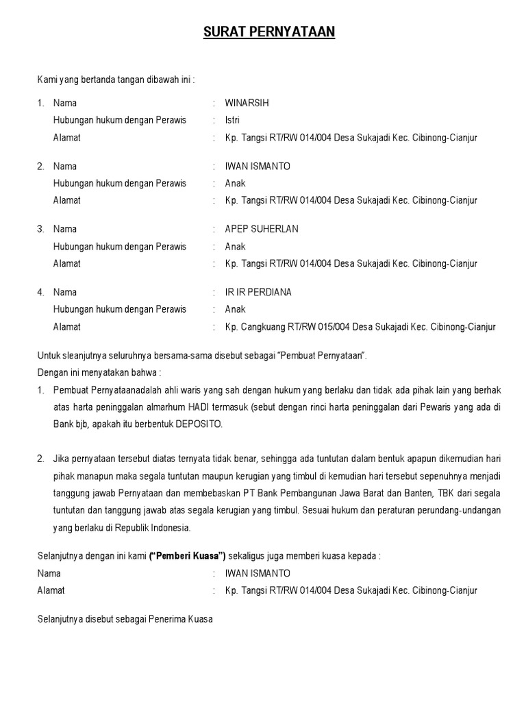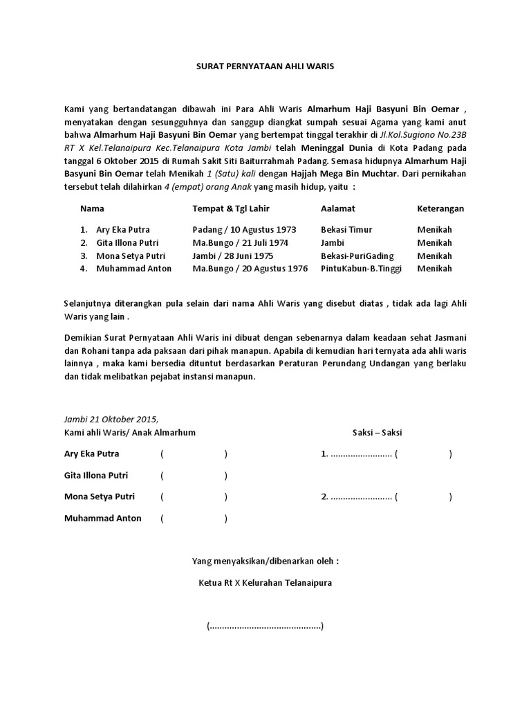 15 Contoh Surat Keterangan Ahli Waris Yang Resmi Dan Sah Contoh Surat
