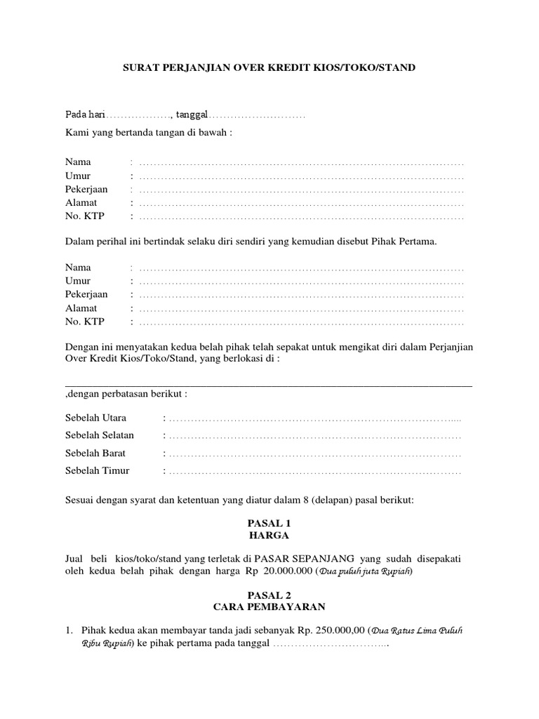 Contoh Surat Perjanjian Sewa Ruko Kios Pdfdoc Lamudi