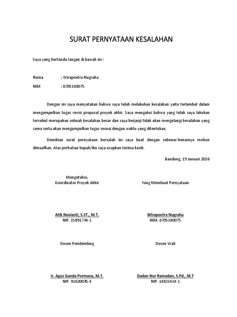 Contoh Surat Pernyataan Telah Melakukan Kesalahan Wisanggeni