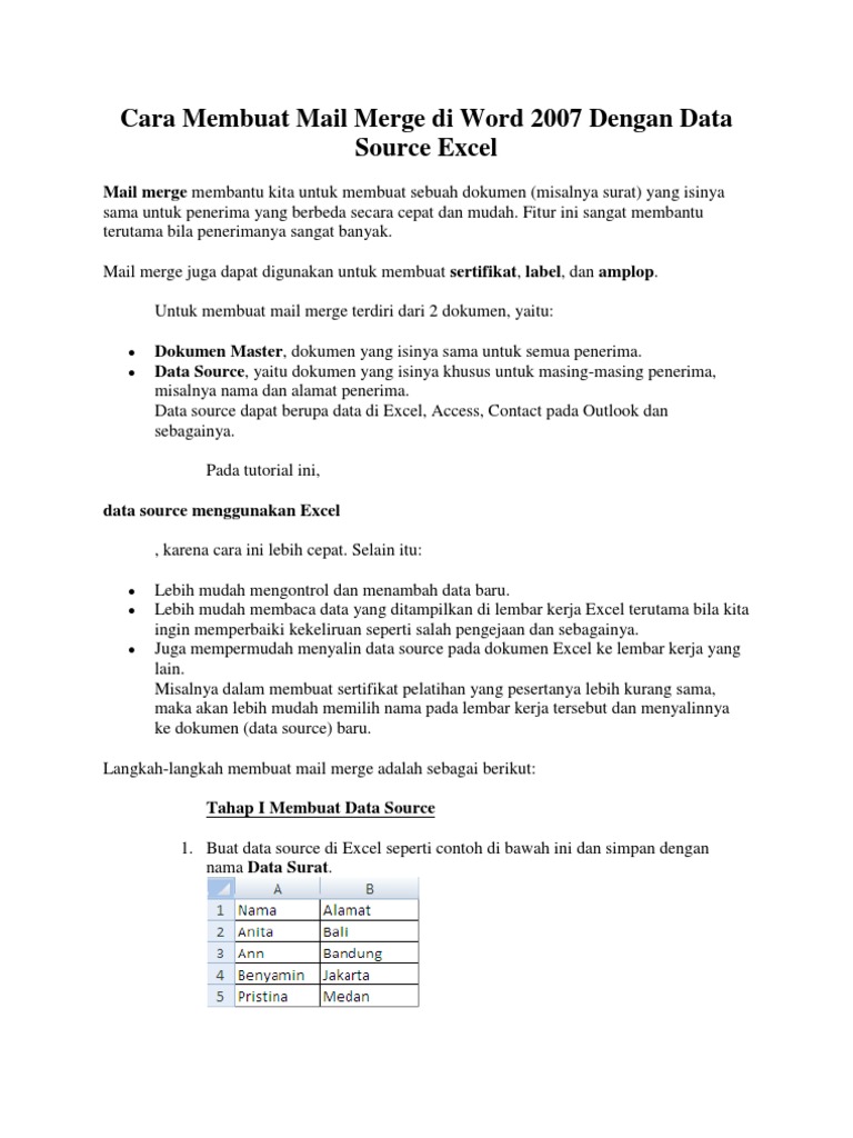 Cara Membuat Mail Merge Di Word Dengan Data Source Excel
