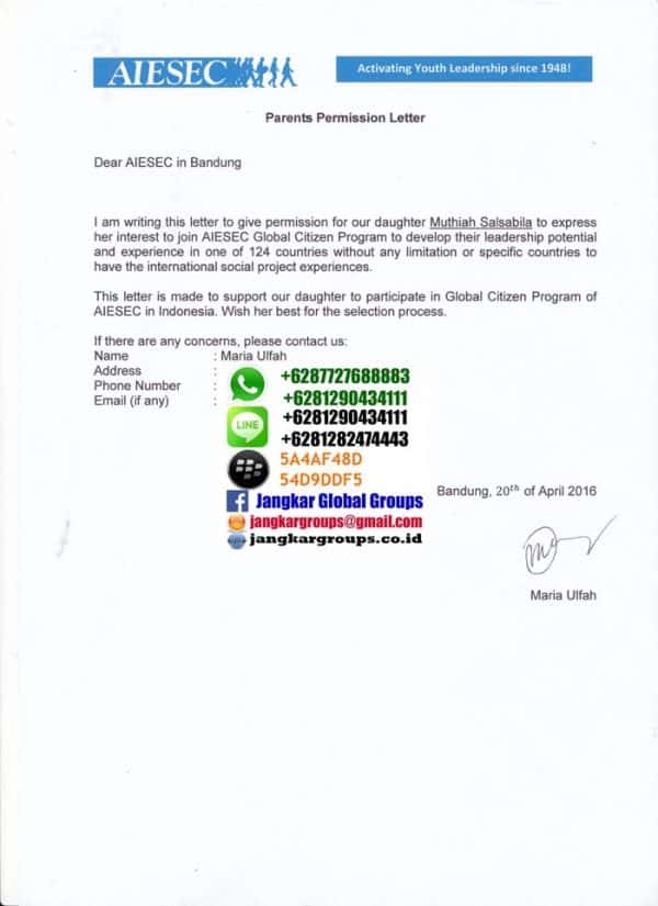 Misalnya kegiatan outbound kemah pendakian gunung dan lain lain. Ada banyak sekali jenis surat izin orang tua baik itu untuk keperluan kerja sekolah kuliah kegiatan organisasi dan masih banyak yang lainnya.