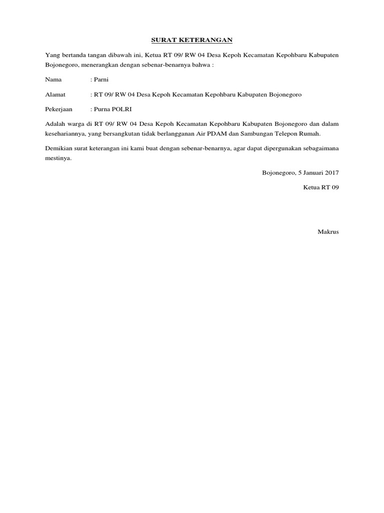 Contoh Surat Keterangan Tidak Berlangganan Air Dan Telepon