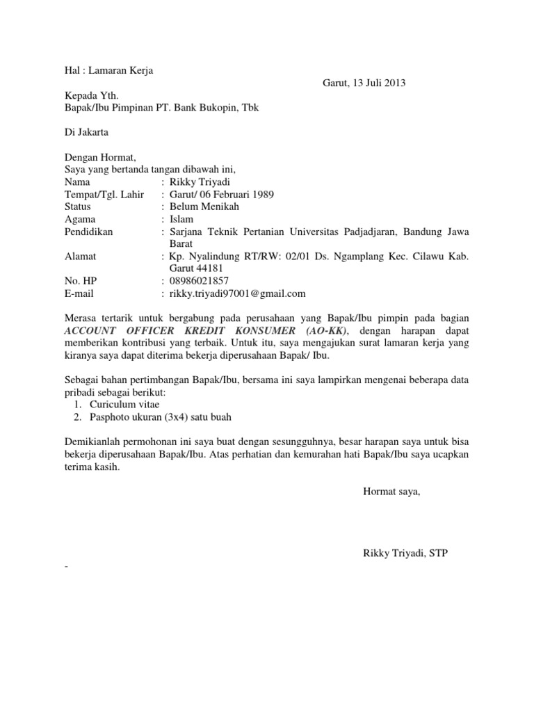 Contoh Surat Lamaran Kerja Bank Bukopin Contoh Surat Lamaran Kerja