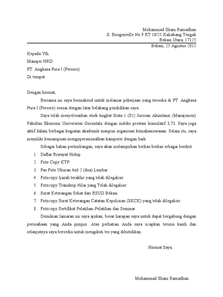 Inilah rekomendasi tentang Contoh Surat Lamaran Kerja Pt Angkasa Pura 2.
