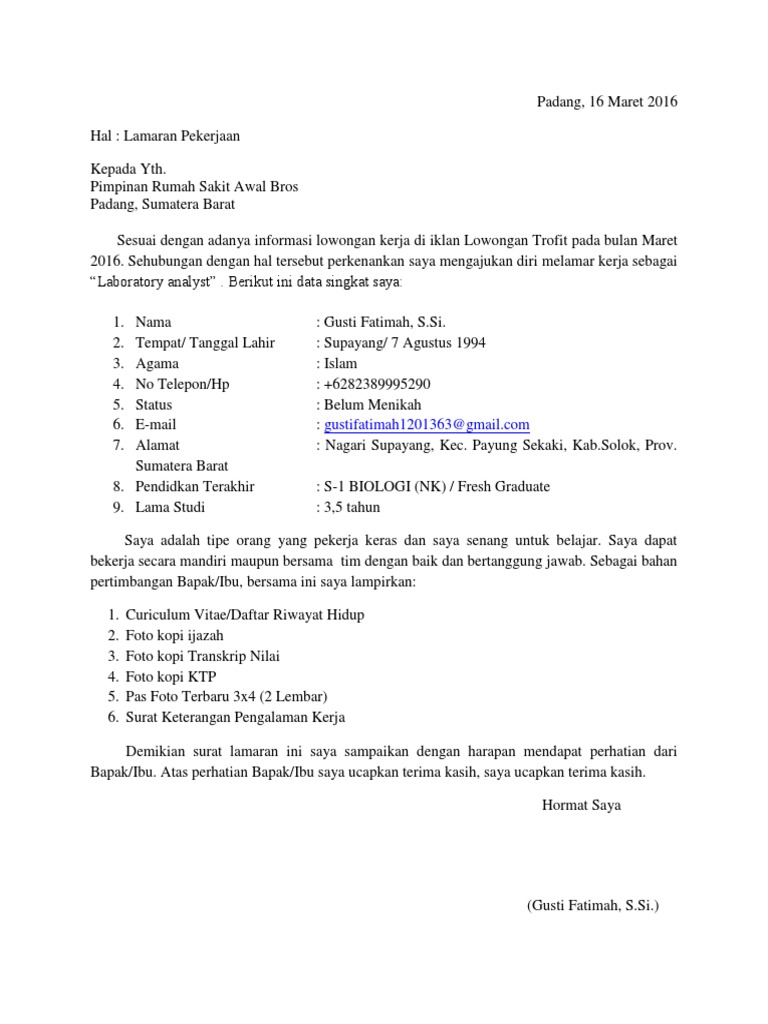 Contoh Surat Lamaran Kerja Analis Kesehatan Contoh Surat Lamaran Kerja