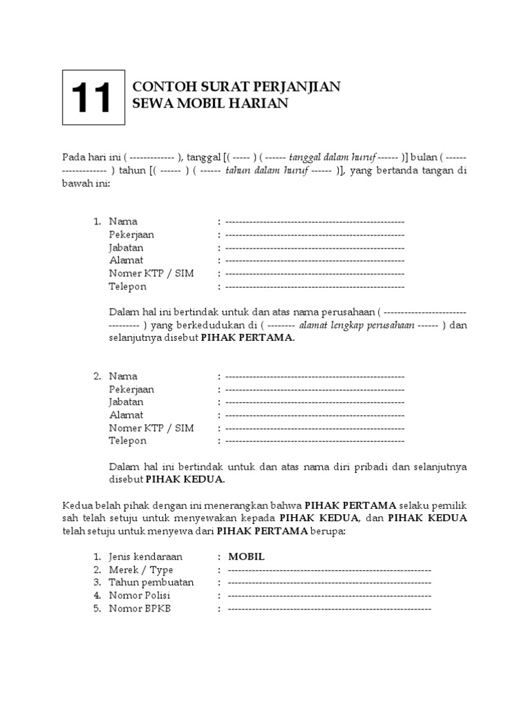 Koleksi admin mengenai Contoh Surat Perjanjian Sewa Mobil Harian.