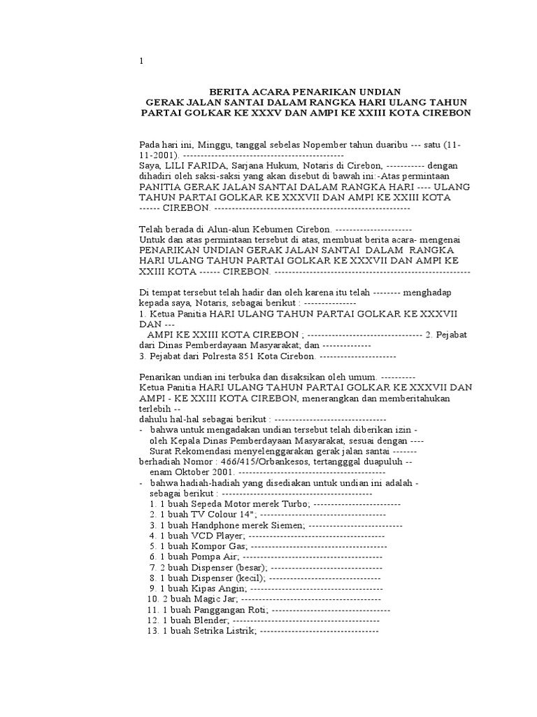 Berita Acara Penarikan Undian Gerak Jalan Santai Dalam Rangka