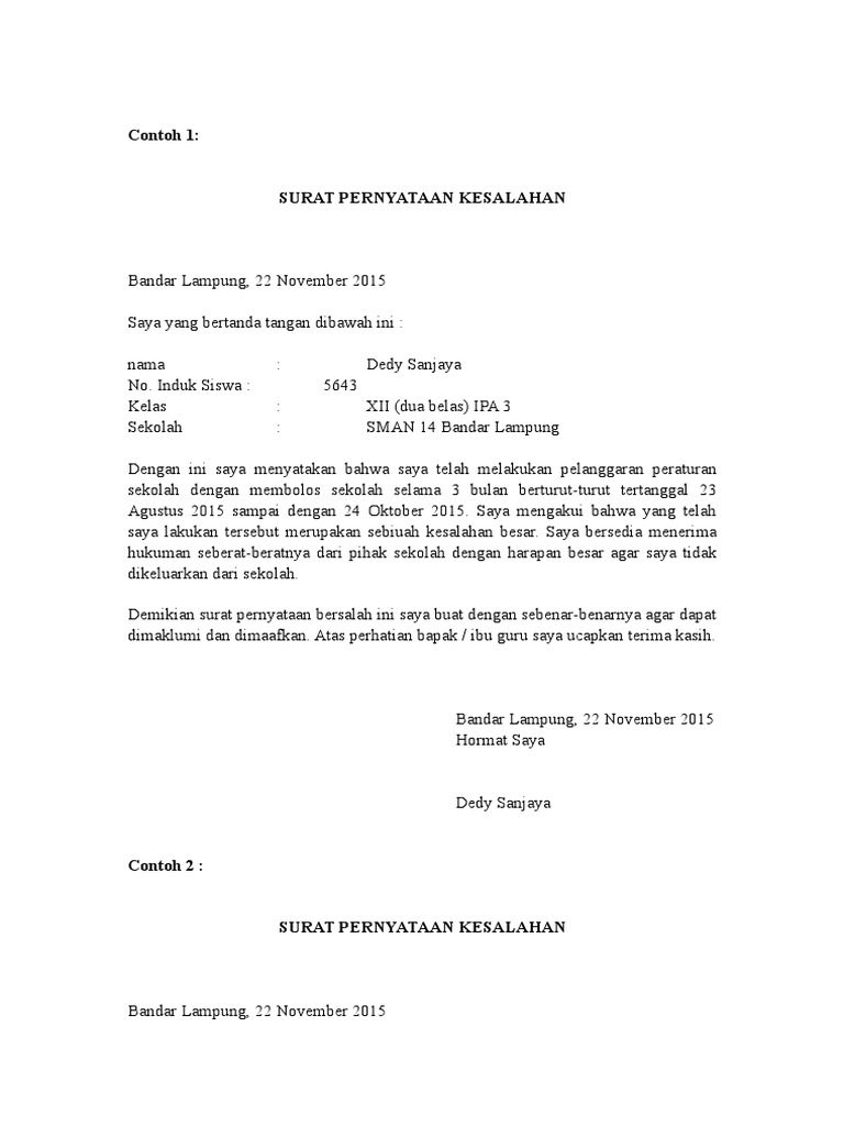 Koleksi admin mengenai Contoh Surat Pernyataan Kesalahan Di Sekolah.