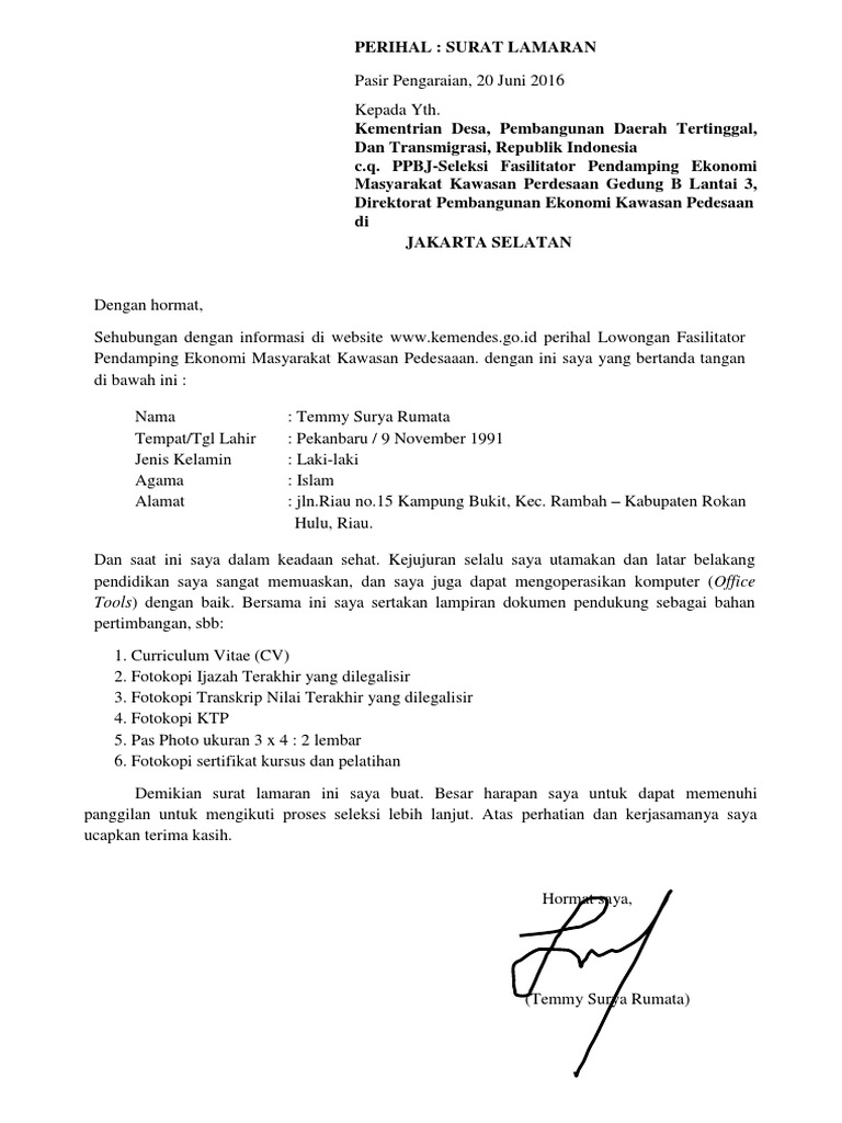 Kali ini admin menulis Format Surat Lamaran Kementerian Desa Pembangunan Daerah Tertinggal Dan Transmigrasi.