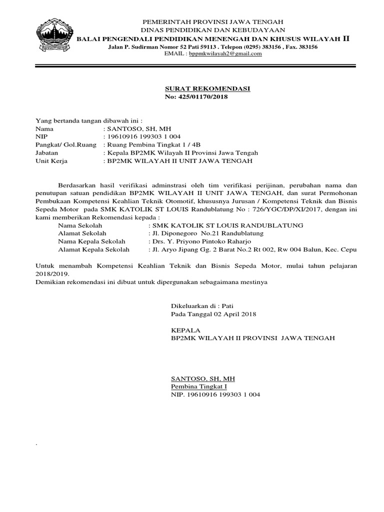Contoh Kop Surat Dinas Pendidikan Provinsi Jawa Tengah Gawe Cv