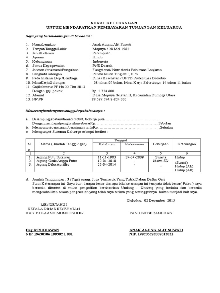 Kp4 Surat Keterangan Untuk Mendapatkan Pembayaran Tunjangan Keluarga