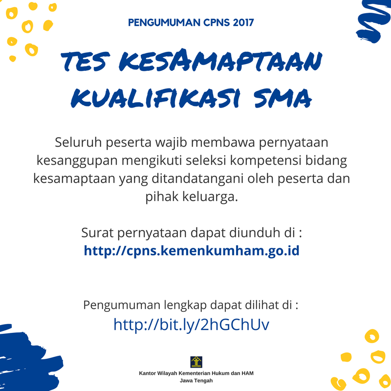 Cpns Kemenkumham 2017 Pengumuman Skb Kesamaptaan Skb Pengamatan