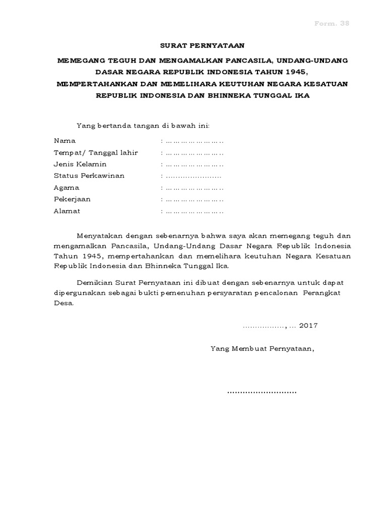 Form 38 Surat Pernyataan Memegang Teguh Dan Mengamalkan Pancasila