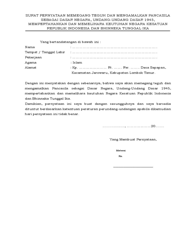 Surat Pernyataan Memegang Teguh Dan Mengamalkan Pancasila Undang