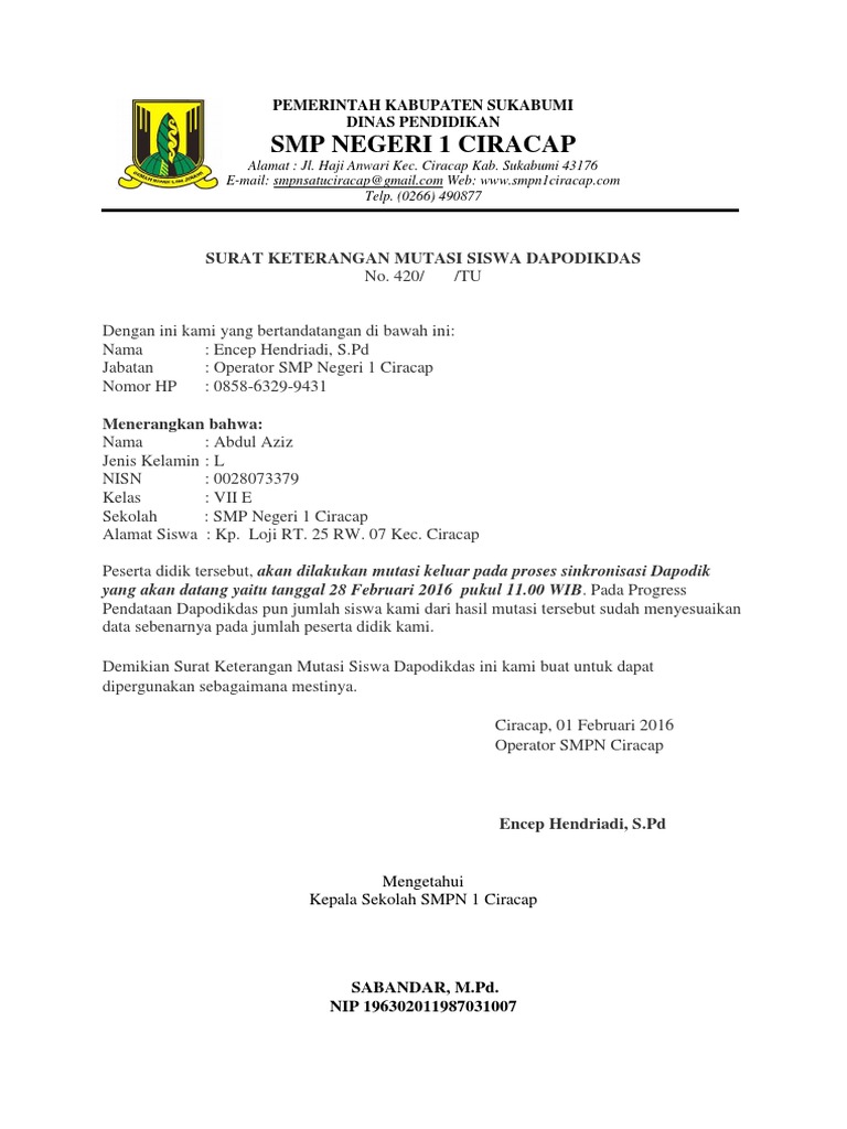 Cara Cetak Surat Mutasi Siswa Online Tahun 2019 Data Kito