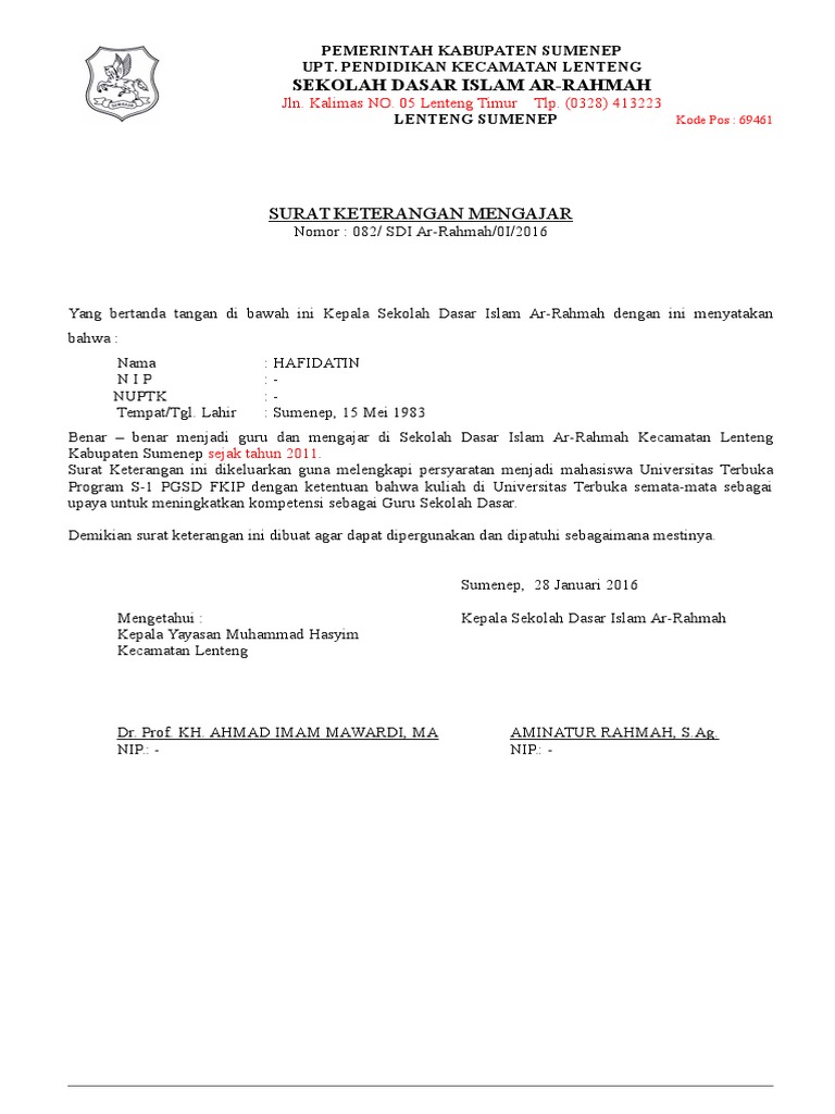 Itulah contoh surat keterangan mengajar dari yayasan yang dapat admin kumpulkan. Admin blog Kumpulan Surat Penting juga mengumpulkan gambar-gambar lainnya terkait contoh surat keterangan mengajar dari yayasan dibawah ini.