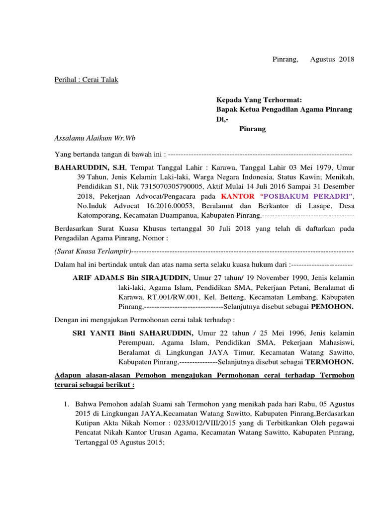 Data-data mengenai Contoh Surat Kuasa Gugatan Cerai Pengadilan Agama 2018.