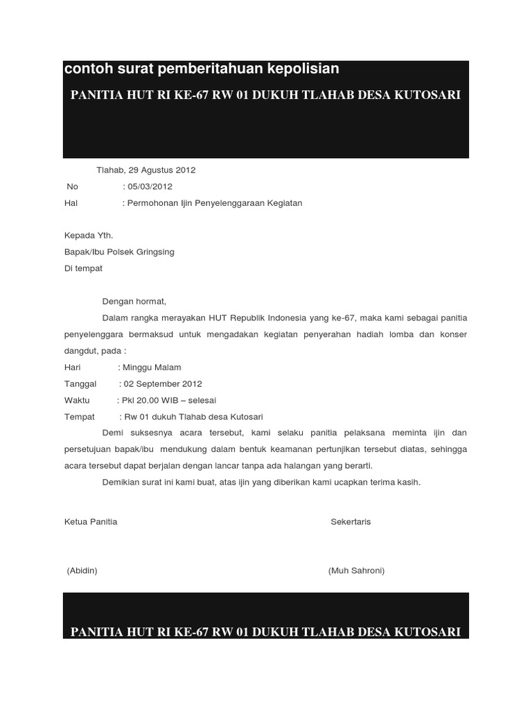 Contoh Surat Pemberitahuan Kegiatan Ke Kepolisian Sahabatnesia
