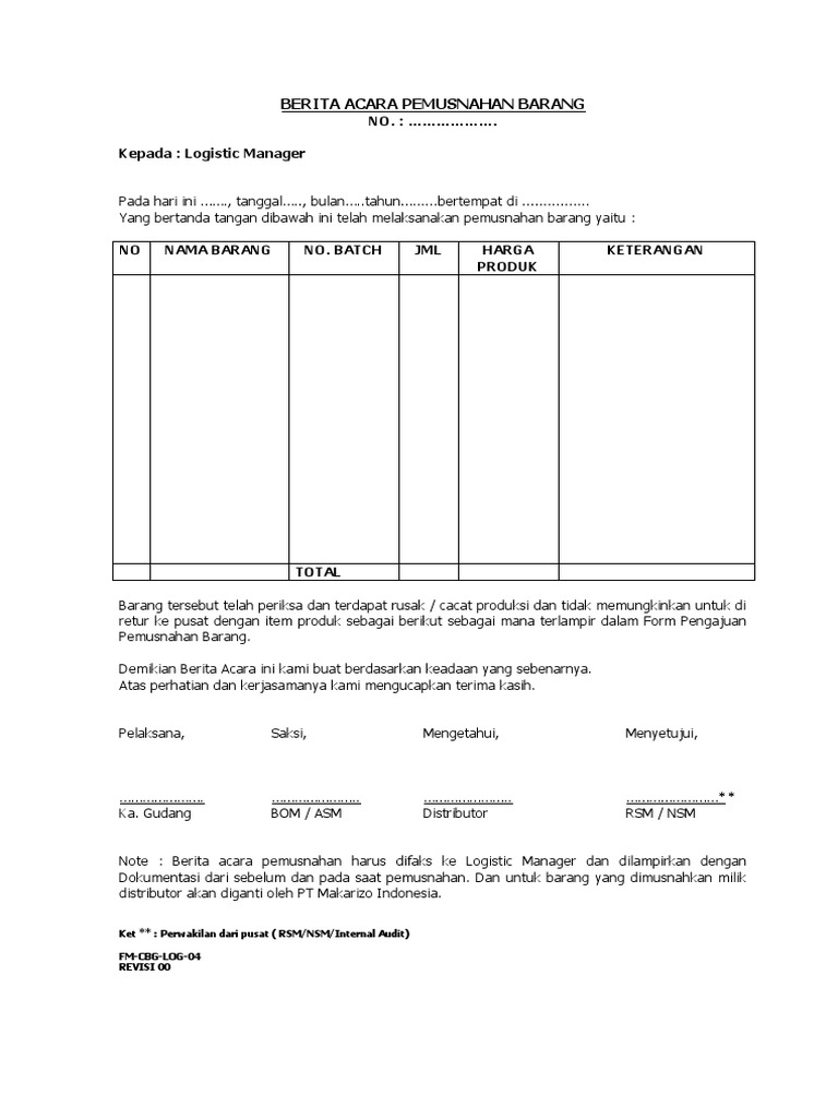 Contoh Surat Berita Acara Penghapusan Aktiva Tetap Our Families