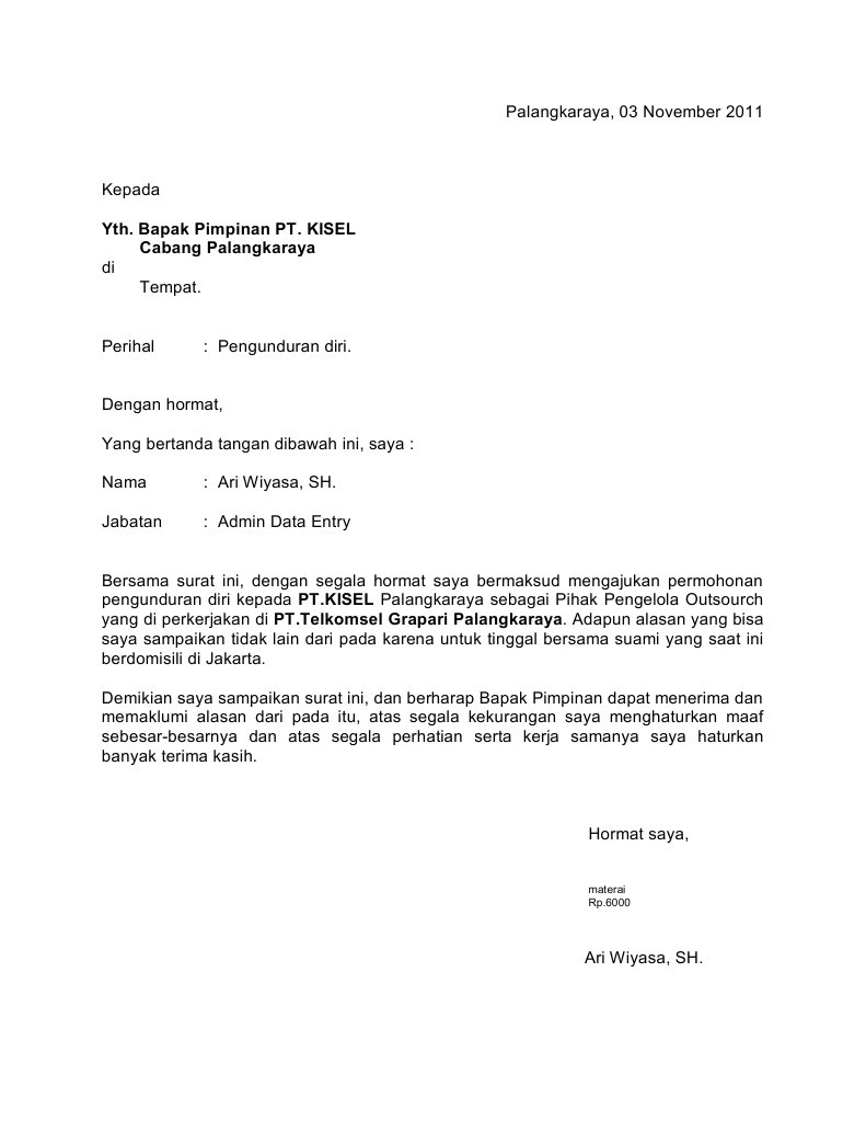 Contoh Surat Pengunduran Diri Kerja Resmi Dan Sopan Dalam Bahasa