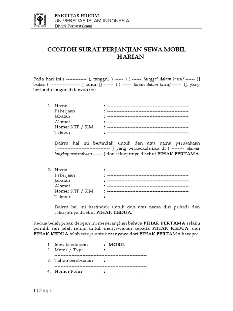 Contoh Surat Perjanjian Sewa Mobil Yang Baik Dan Benar Contoh Surat