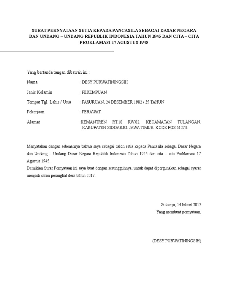 Contoh Surat Pernyataan Setia Kepada Pancasila Dan Uud 1945
