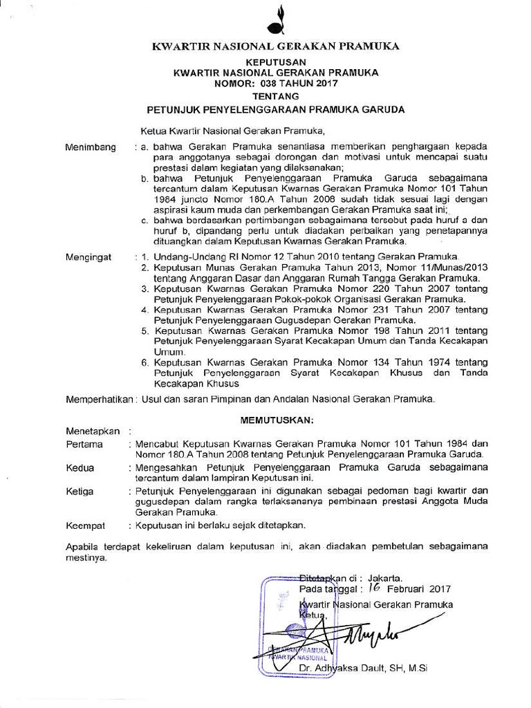 Itulah nomor surat keputusan ketua kwarnas tentang art gerakan pramuka yang dapat admin kumpulkan. Admin blog Kumpulan Surat Penting juga mengumpulkan gambar-gambar lainnya terkait nomor surat keputusan ketua kwarnas tentang art gerakan pramuka dibawah ini.