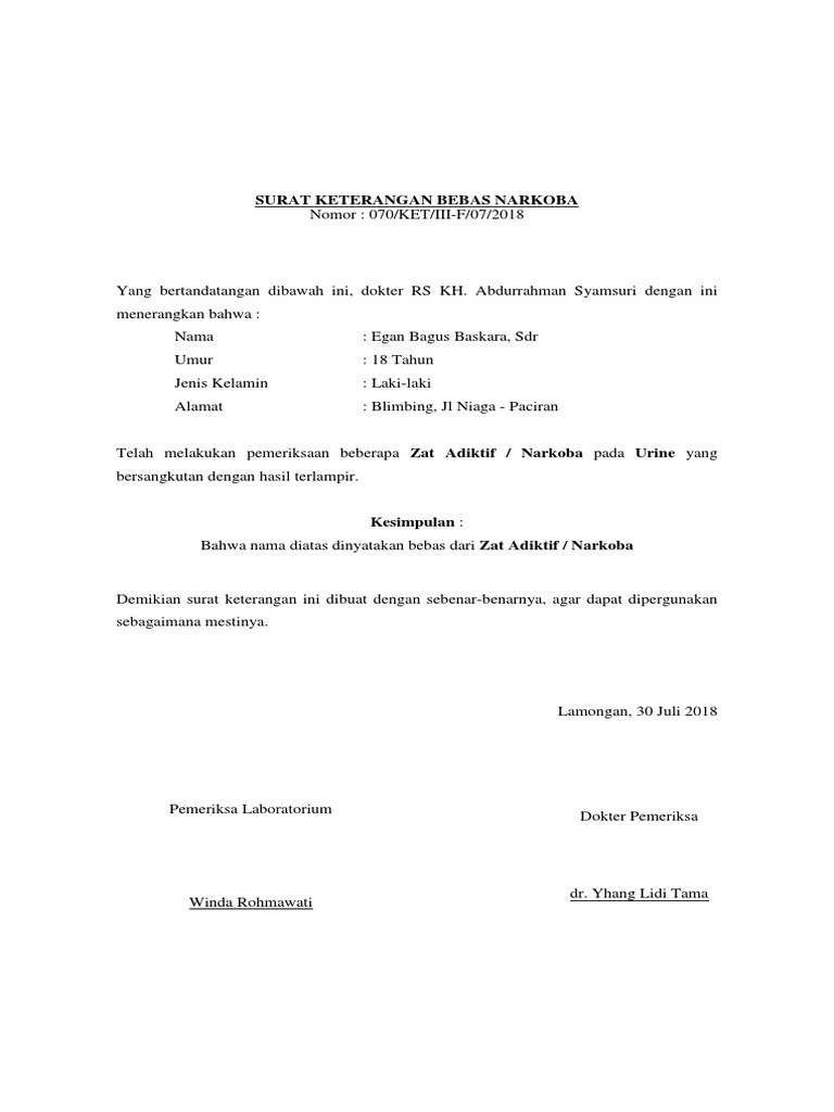 Bkd Surat Keterangan Bebas Narkoba Dari Dokter Rumah Sakit Pe