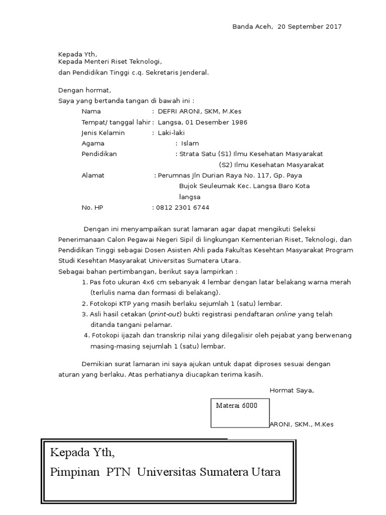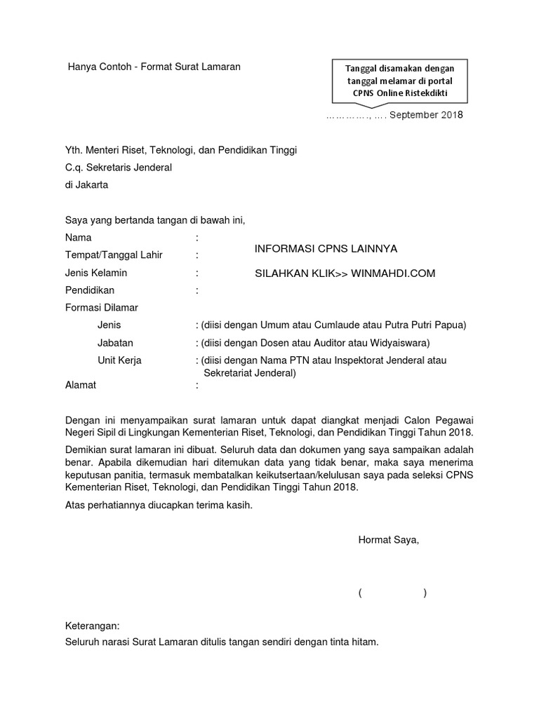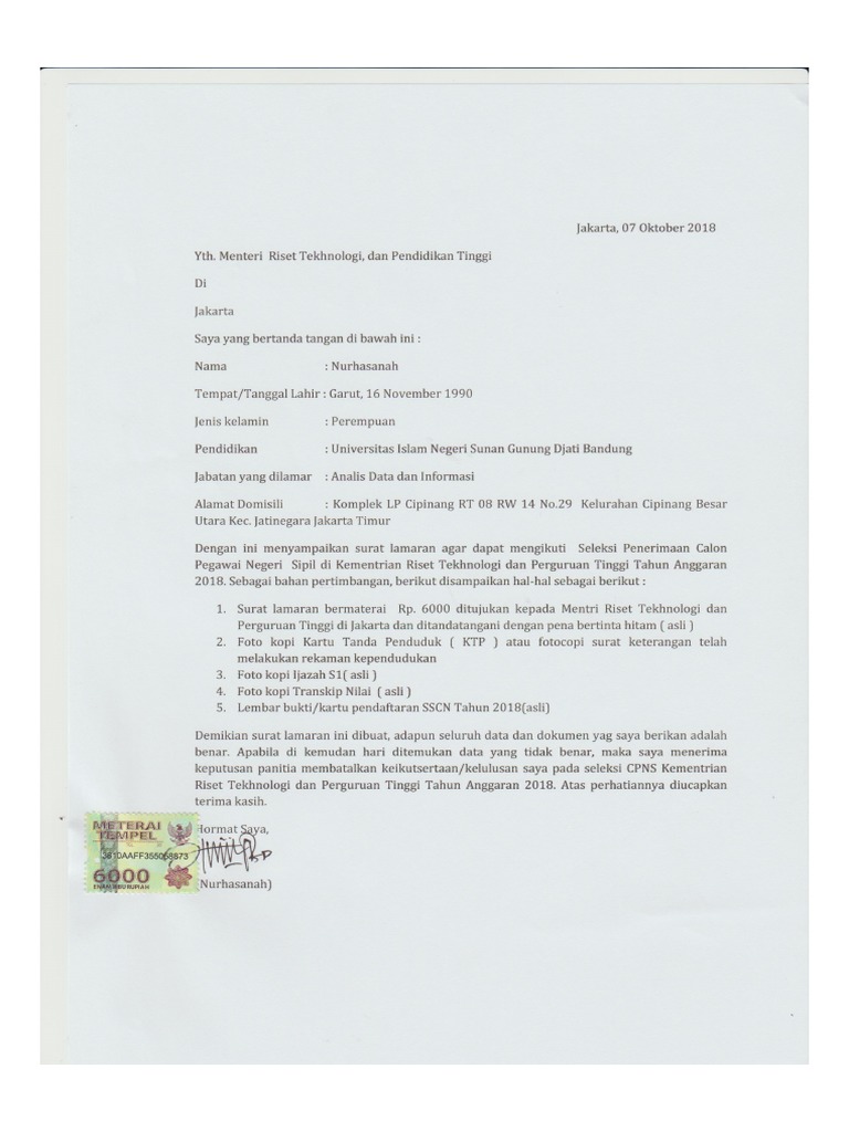 Contoh Surat Lamaran Dan Surat Pernyataan Cpns 2018 Download Link