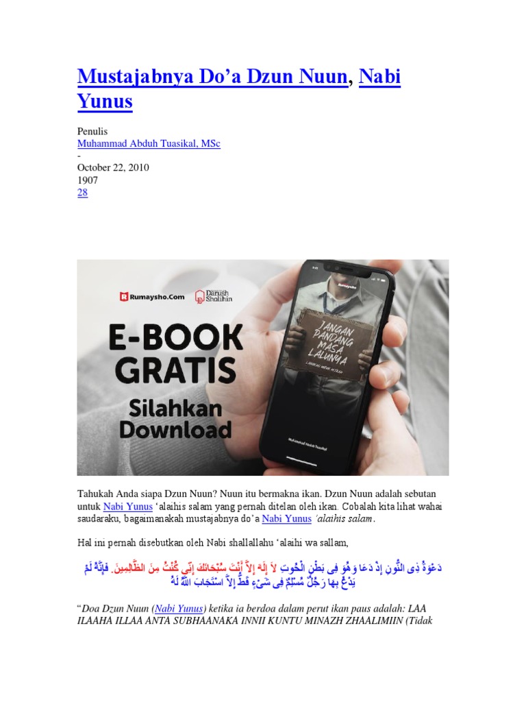 Teks bacaan doa nabi yunus as dzun nuun dalam al quran beserta manfaat dan cara mengamalkannya. Nabi yunus sangat terkejut ketika mendapati dirinya dalam perut ikan. Nabi yunus merasakan bahwa dirinya telah mati.