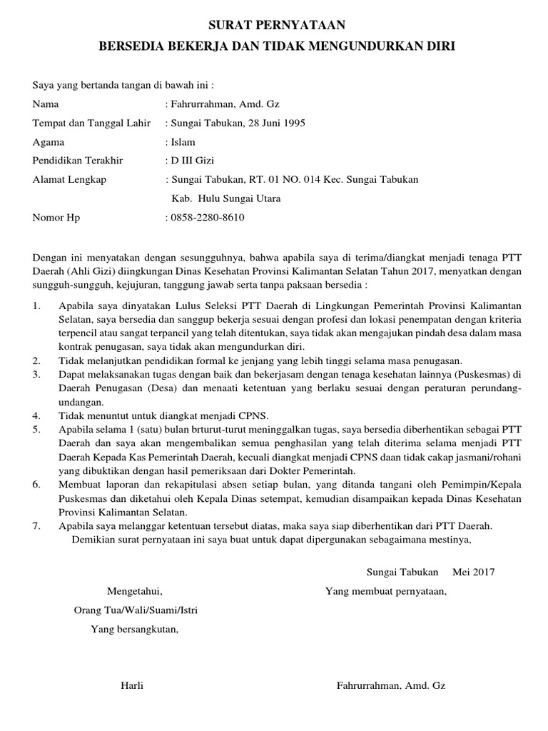 Contoh Surat Cpns Pernyataan Tidak Mengundurkan Diri 2019 Kumpulan
