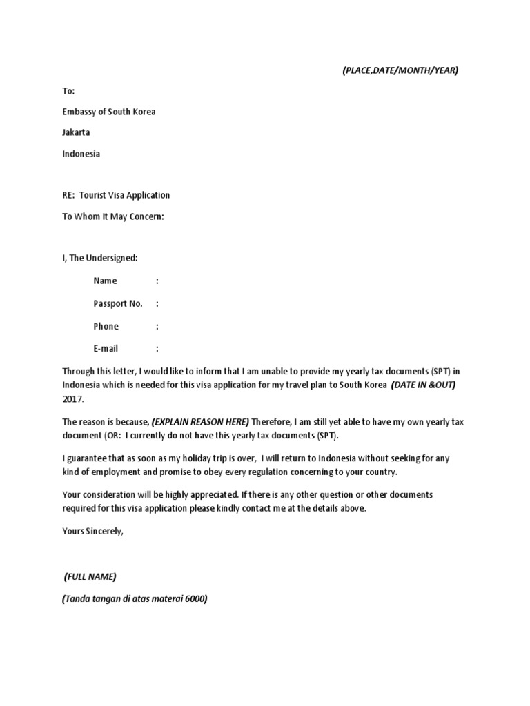 Referensi Contoh Surat Pernyataan Visa Korea 78 Guna Ide Desain
